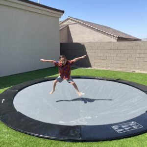 8ft Round Akrobat Primus Flat In-Ground Trampoline – Gray Pad with Black Jump Mat